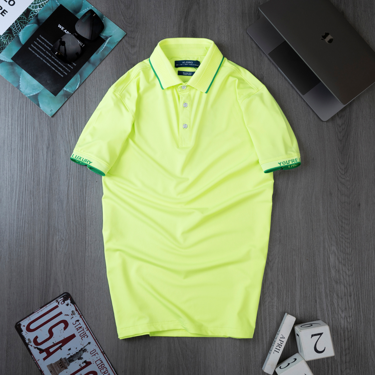 ✨Áo polo golf nam ngắn tay ALIGRO chất vải coolmax màu xanh chuối năng động ALGPLO104