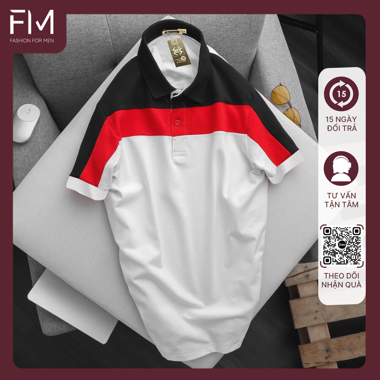 - Xuất xứ: Việt Nam. Bảng màu: Sọc trắng – Sọc đỏ - Sọc xanh. Áo thun cổ bẻ phối vai thời trang nam của FORMEN SHOP là sản phẩm chắc chắn bạn phải có trong tủ quần áo với bảng màu vô cùng đa dạng, giúp bạn có thể thay đổi phong cách hàng ngày. Kích thước: