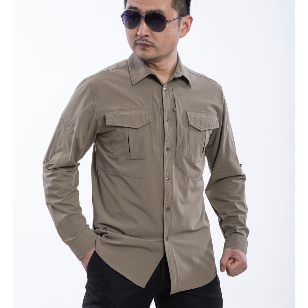 Áo sơ mi chiến thuật_nhanh khô_kháng nước Dòng áo này có thể tháo tay áo để biến thành áo tay ngắn khi cần thiết Chất liệu sợi tổng hợp đặc biệt thoáng khí, kháng nước,