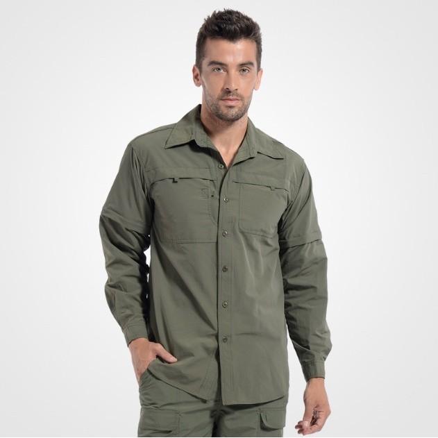 Áo sơ mi chiến thuật_nhanh khô_kháng nước Dòng áo này có thể tháo tay áo để biến thành áo tay ngắn khi cần thiết Chất liệu sợi tổng hợp đặc biệt thoáng khí, kháng nước,