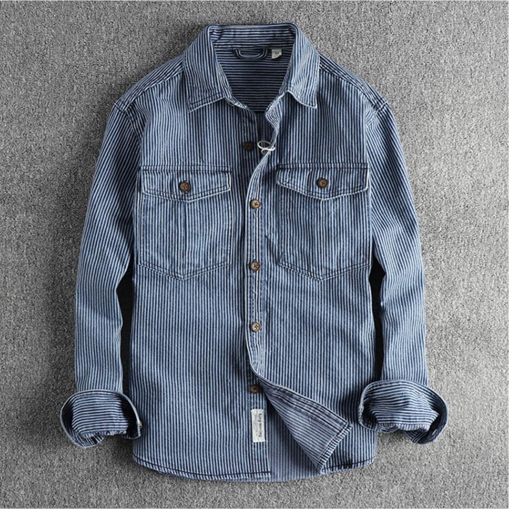 Áo sơ mi denim sọc phong cách Retro_Biker_Army Áo sơ mi Wild Casual Màu đang hot lắm ạ Chất vải denim sọc cực bụi , phom chuẩn mặc rất đẹp ạ Size: M: từ 55-65 kg L: từ 65 - 73 kg XL: từ 73 -80 kg XXL: từ 80 - 87 kg XXXL: trên 87 kg