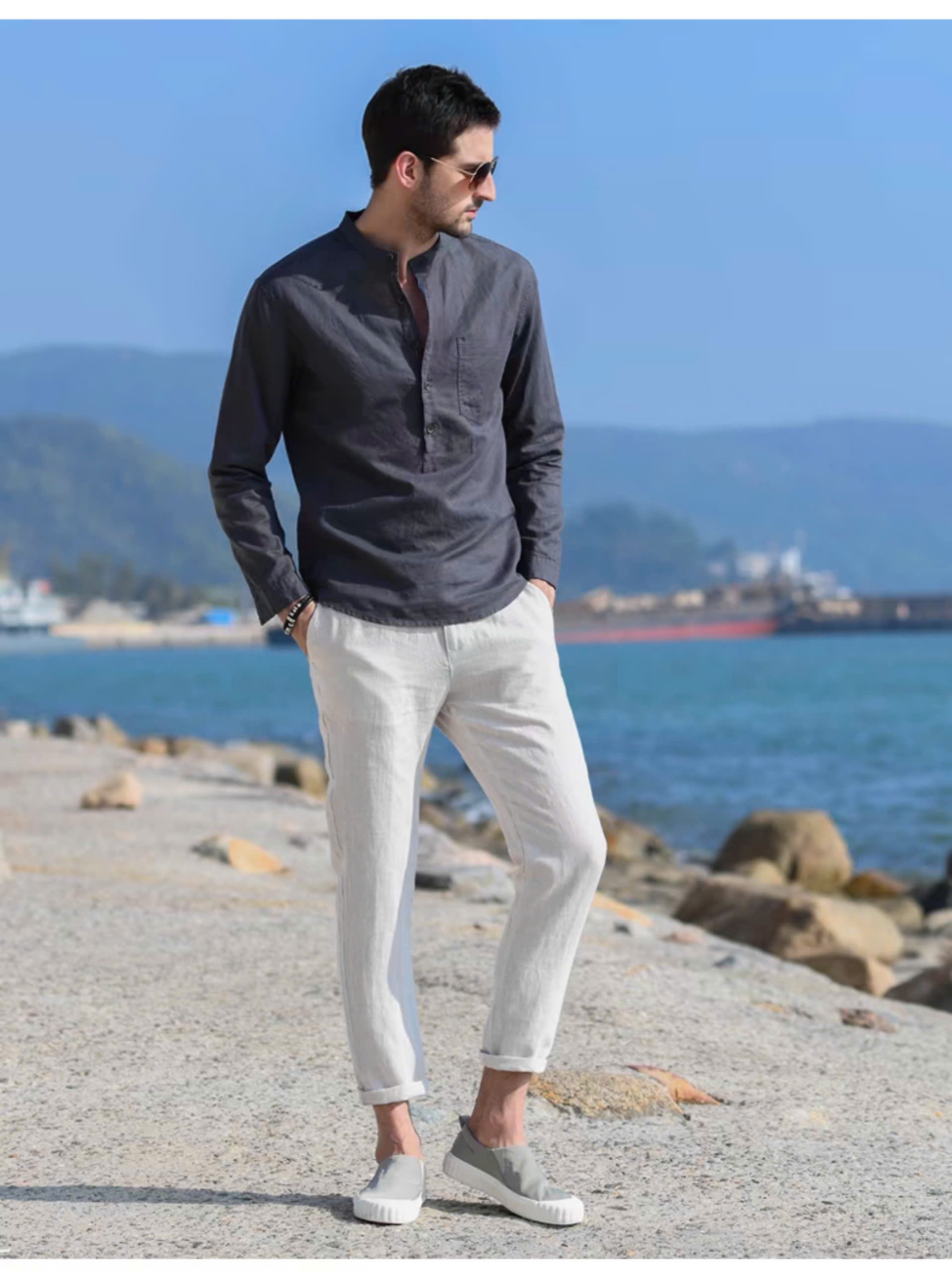 MÔ TẢ SẢN PHẨM 1. Tên sản phẩm: Áo Sơ Mi Đũi Nam Dáng áo: form suông Chất vải: Vải Linen cao cấp Họa Tiết: Trơn Hướng dẫn chọn size: SIZE M: < 60 Kg