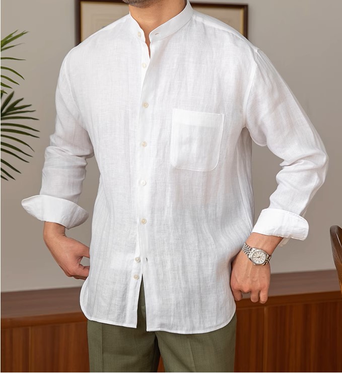 STAND COLLAR Shirt Màu: Trắng Size: S - M - L - XL Chất Liệu: Khaki Hướng dẫn giặt ủi: + Giặt với nước lạnh + Chỉnh chế độ máy giặt vòng quay vừa không