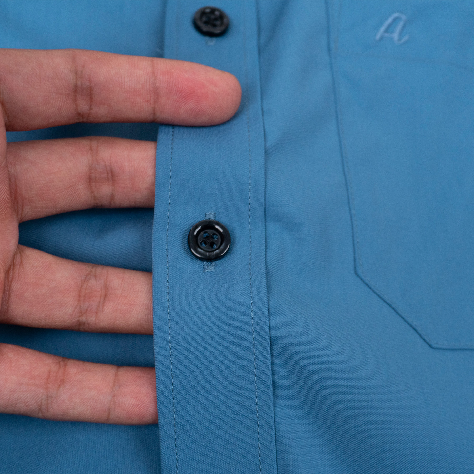[HÀNG VIỆT NAM] Áo Sơ Mi Nam Thương Hiệu Anton Dài Tay Vải Cotton Xanh Đậm Trơn Có Túi - A13