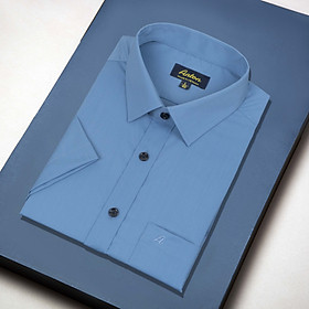 ✨Áo Sơ Mi Nam Công Sở Trung Niên Thương Hiệu Anton Somianton Vải Cotton Màu Xanh Trơn Ngắn Tay Có Túi - YSN13