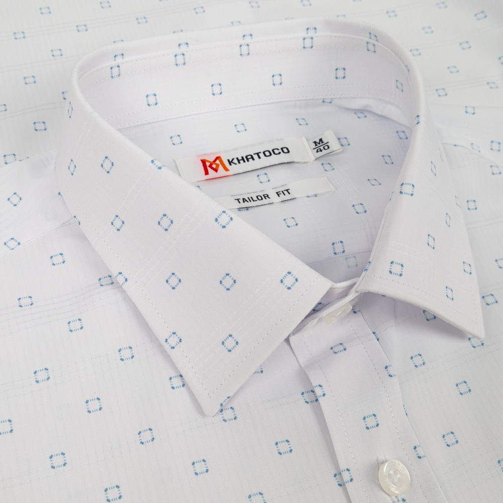 Áo sơ mi nam Khatoco tay dài  Áo Sơ Mi Nam Công Sở Trung Niên Thương Hiệu Anton Dài Tay Trắng Vải Cotton Họa Tiết Chấm Bi Nhỏ - Y302