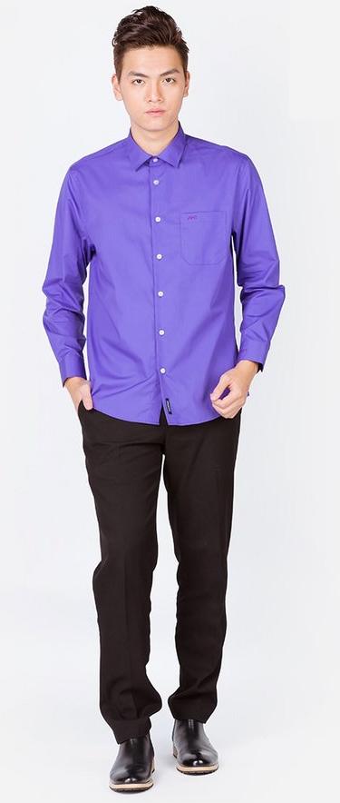 ✨Áo sơ mi nam dài tay ALIGRO cổ bẻ dáng ôm body 100% chất cotton màu tím ALGS090