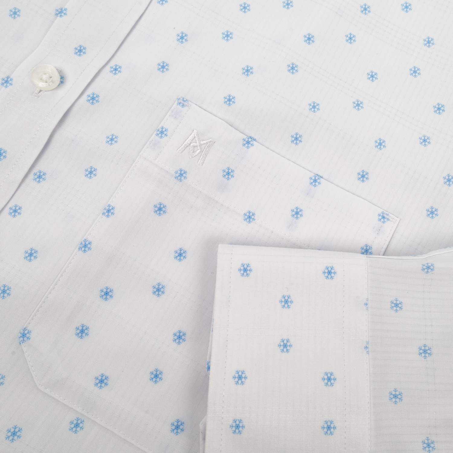 (V) MÔ TẢ: Form Taylor, tai dài Form áo tiêu chuẩn với form áo rộng vừa phải, không ôm sát cơ thể, bó nhẹ ở vùng eo và tay áo. Độ rộng vùng ngực và nách cũng sẽ fit hơn với cơ thể. Không quá rộng như form áo cổ điển. Màu vải nhã nhặn và trung tính dễ dàng phối trang phục tạo sự lịch lãm, nam tính Nút ton-sur-ton khắc logo đẹp mắt phối trọn vẹn màu áo. Logo thêu sắc nét trên túi áo. Chất liệu:50%POLYESTER- 24%COTTON-2%SPANDEX- 24%VISCOSE(BAMBOO) |Mềm mịn|Thấm hút |Kháng khuẩn|Độ thoáng khí cao|Chống tia UV|Chống nhăn|Chống co rút |Nhanh khô|Dễ vệ sinh làm sạch|Đứng phom áo Màu sắc : Màu Xanh họa tiết