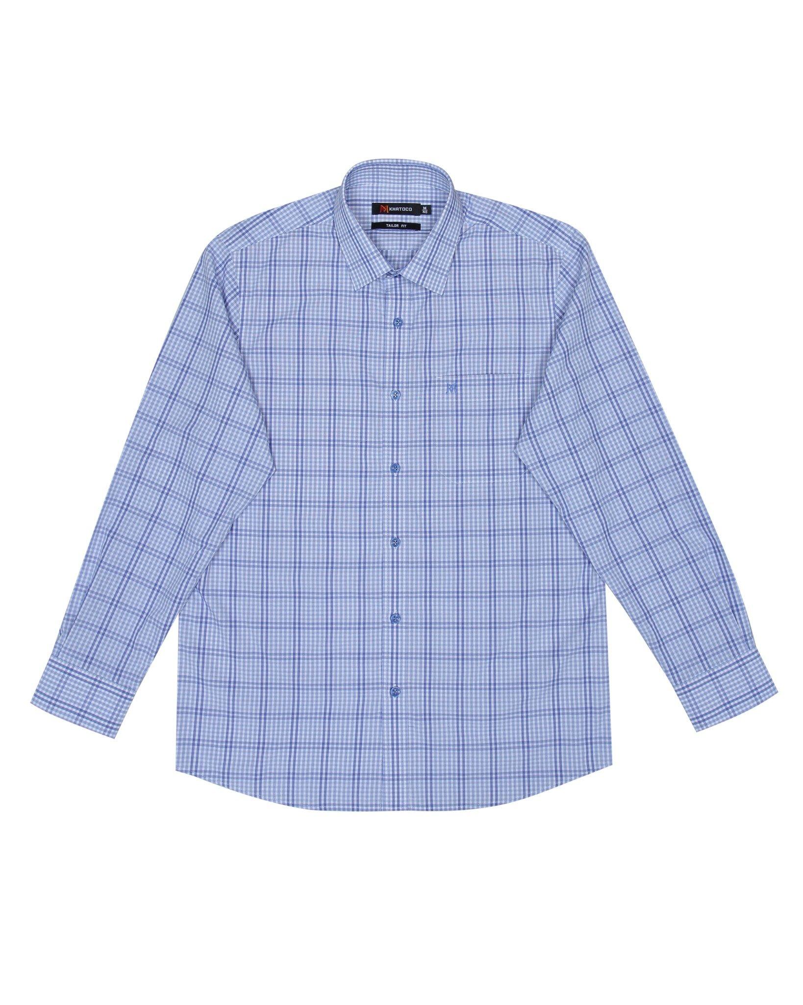 Áo sơ mi nam dài tay May 10 dáng RegularFit mã 010122340  Áo sơ mi nam KHATOCO dài tay kẻ caro A1MD468S1-CNCR064-2408-D