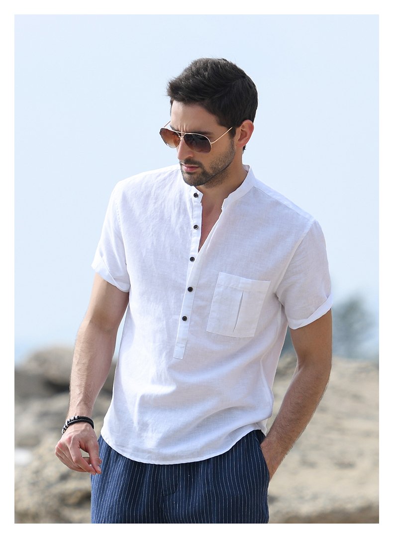 ✨Áo sơ mi nam ngắn tay cổ tàu, áo sơ mi linen, phong cách Hàn Quốc, trang nhã, lịch lãm