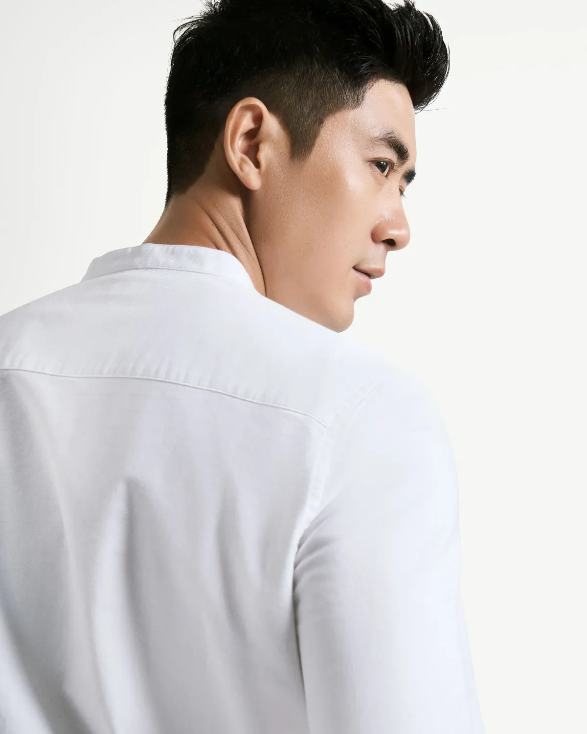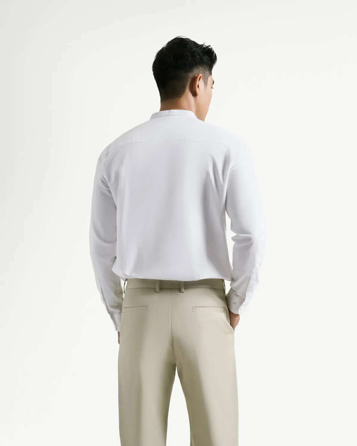 STAND COLLAR Shirt Màu: Trắng Size: S - M - L - XL Chất Liệu: Khaki Hướng dẫn giặt ủi: + Giặt với nước lạnh + Chỉnh chế độ máy giặt vòng quay vừa không