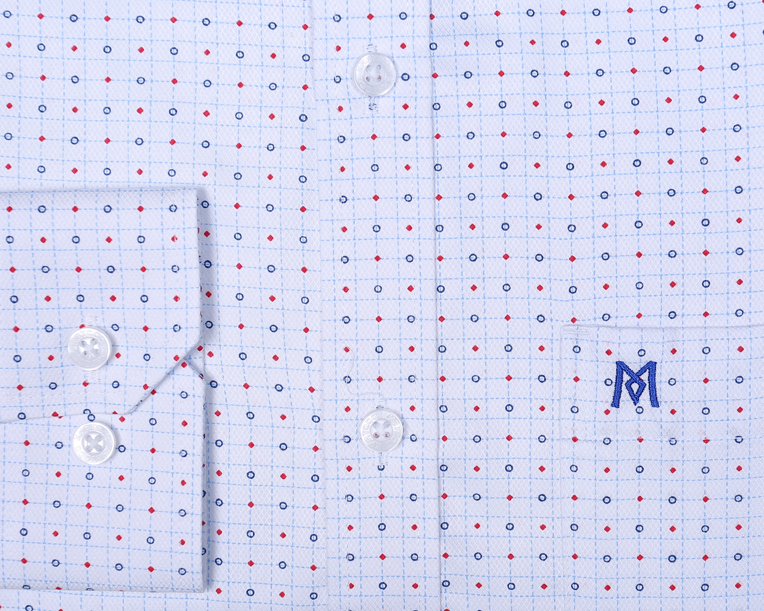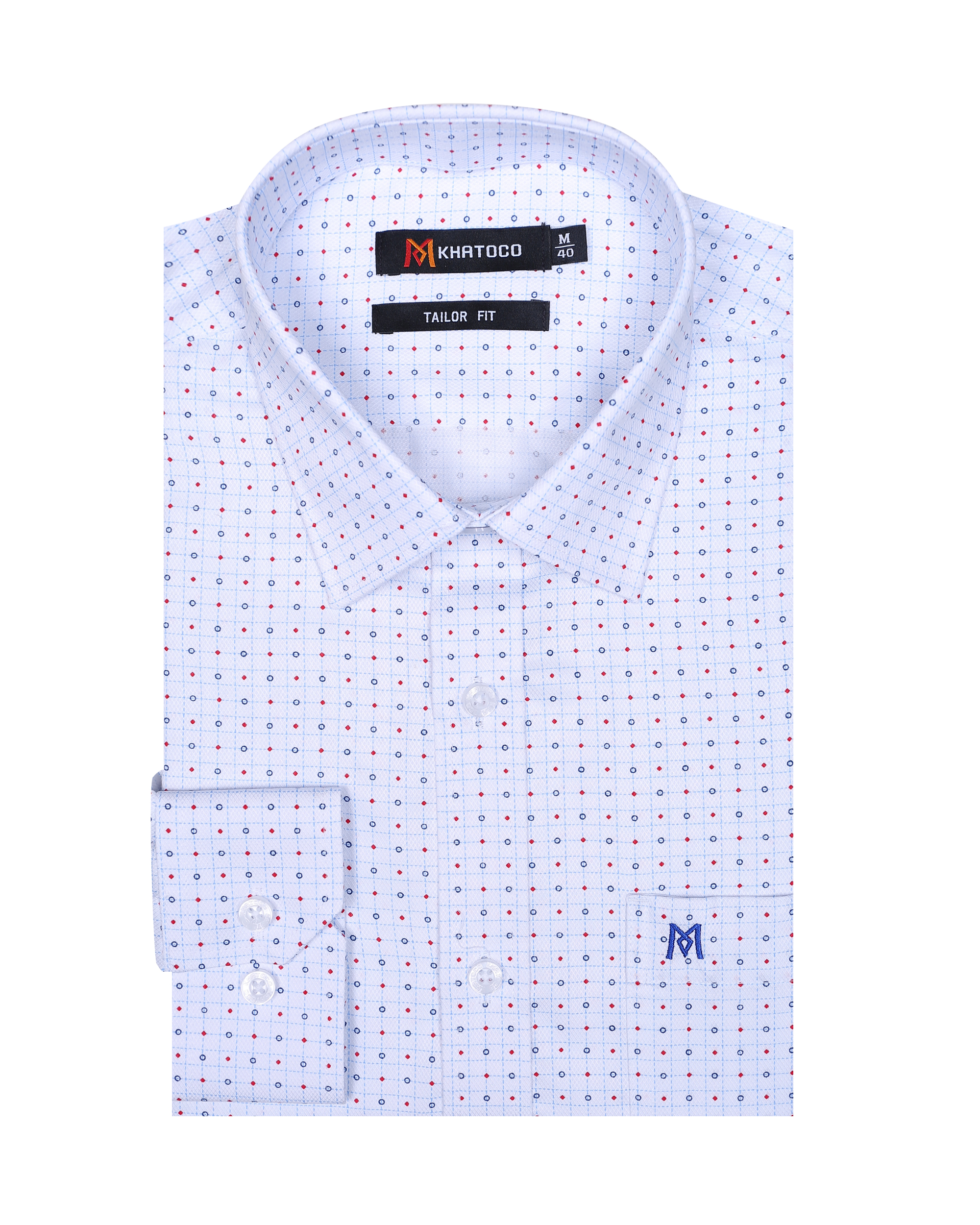 (V) MÔ TẢ: Form Taylor, tai dài   Form áo tiêu chuẩn với form áo rộng vừa phải, không ôm sát cơ thể, bó nhẹ ở vùng eo và tay áo. Độ rộng vùng ngực và nách cũng sẽ fit hơn với cơ thể. Không quá rộng như form áo cổ điển.   Màu vải nhã nhặn và trung tính dễ dàng phối trang phục tạo sự lịch lãm, nam tính   Nút ton-sur-ton khắc logo đẹp mắt phối trọn vẹn màu áo.   Logo thêu sắc nét trên túi áo.  Chất liệu:50%POLYESTER- 24%COTTON-2%SPANDEX- 24%VISCOSE(BAMBOO) |Mềm mịn|Thấm hút |Kháng khuẩn|Độ thoáng khí cao|Chống tia UV|Chống nhăn|Chống co rút |Nhanh khô|Dễ vệ sinh làm sạch|Đứng phom áo Màu sắc : Màu Xanh họa tiết