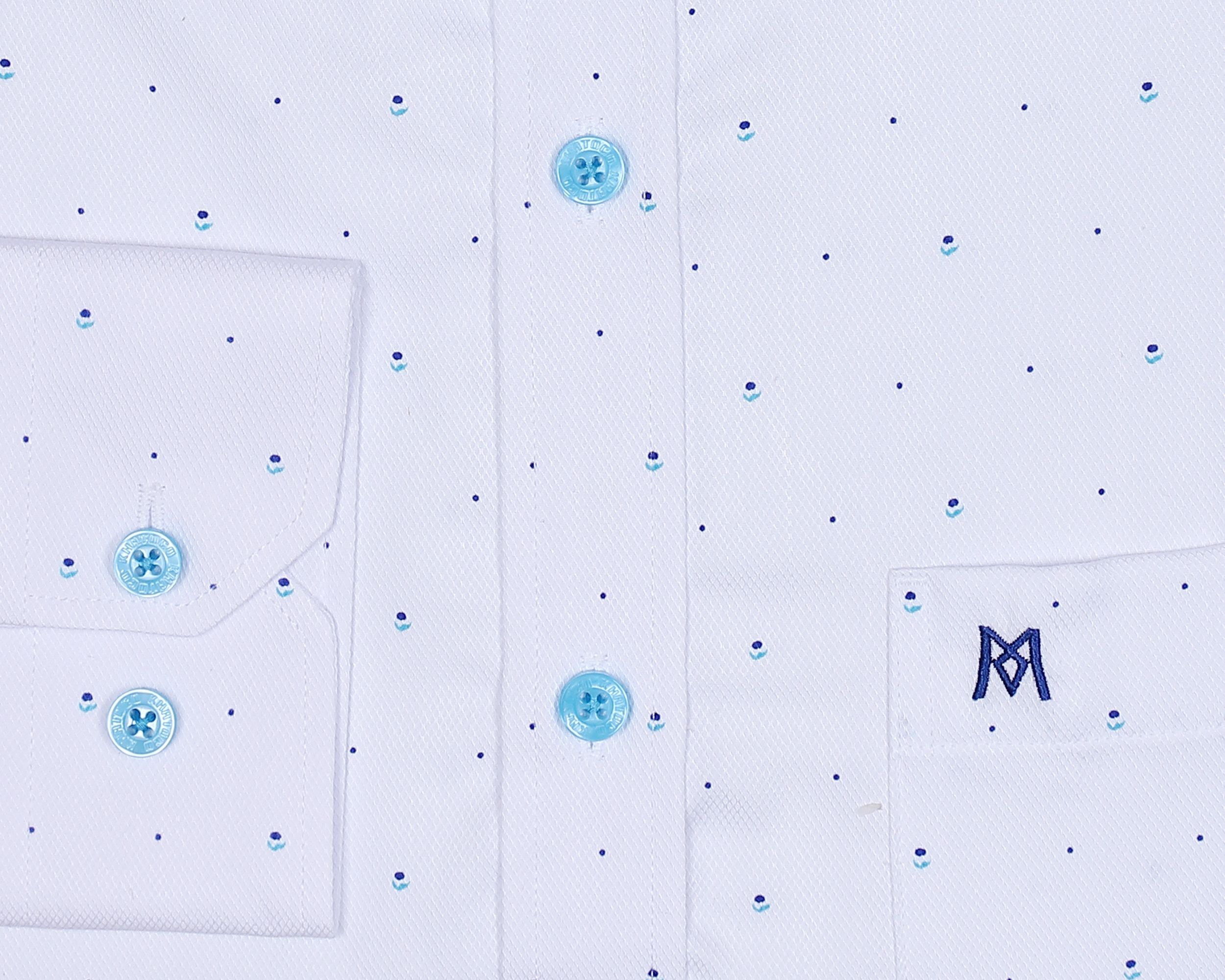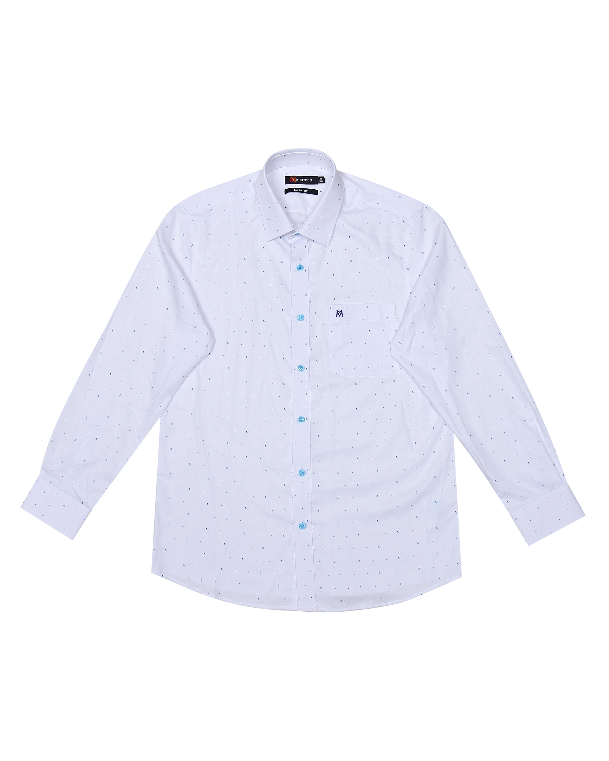 (V) MÔ TẢ: Form Taylor, tai dài   Form áo tiêu chuẩn với form áo rộng vừa phải, không ôm sát cơ thể, bó nhẹ ở vùng eo và tay áo. Độ rộng vùng ngực và nách cũng sẽ fit hơn với cơ thể. Không quá rộng như form áo cổ điển.   Màu vải nhã nhặn và trung tính dễ dàng phối trang phục tạo sự lịch lãm, nam tính   Nút ton-sur-ton khắc logo đẹp mắt phối trọn vẹn màu áo.   Logo thêu sắc nét trên túi áo.  Chất liệu:50%POLYESTER- 24%COTTON-2%SPANDEX- 24%VISCOSE(BAMBOO) |Mềm mịn|Thấm hút |Kháng khuẩn|Độ thoáng khí cao|Chống tia UV|Chống nhăn|Chống co rút |Nhanh khô|Dễ vệ sinh làm sạch|Đứng phom áo Màu sắc : Màu Xanh họa tiết