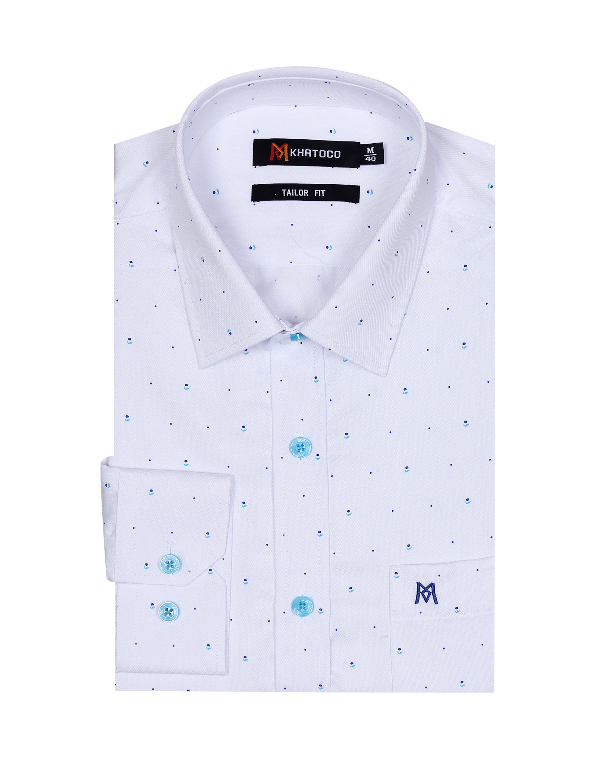 Áo sơ mi nam Khatoco tay dài  Áo Sơ Mi Nam Công Sở Trung Niên Thương Hiệu Anton Dài Tay Trắng Vải Cotton Họa Tiết Chấm Bi Nhỏ - Y302