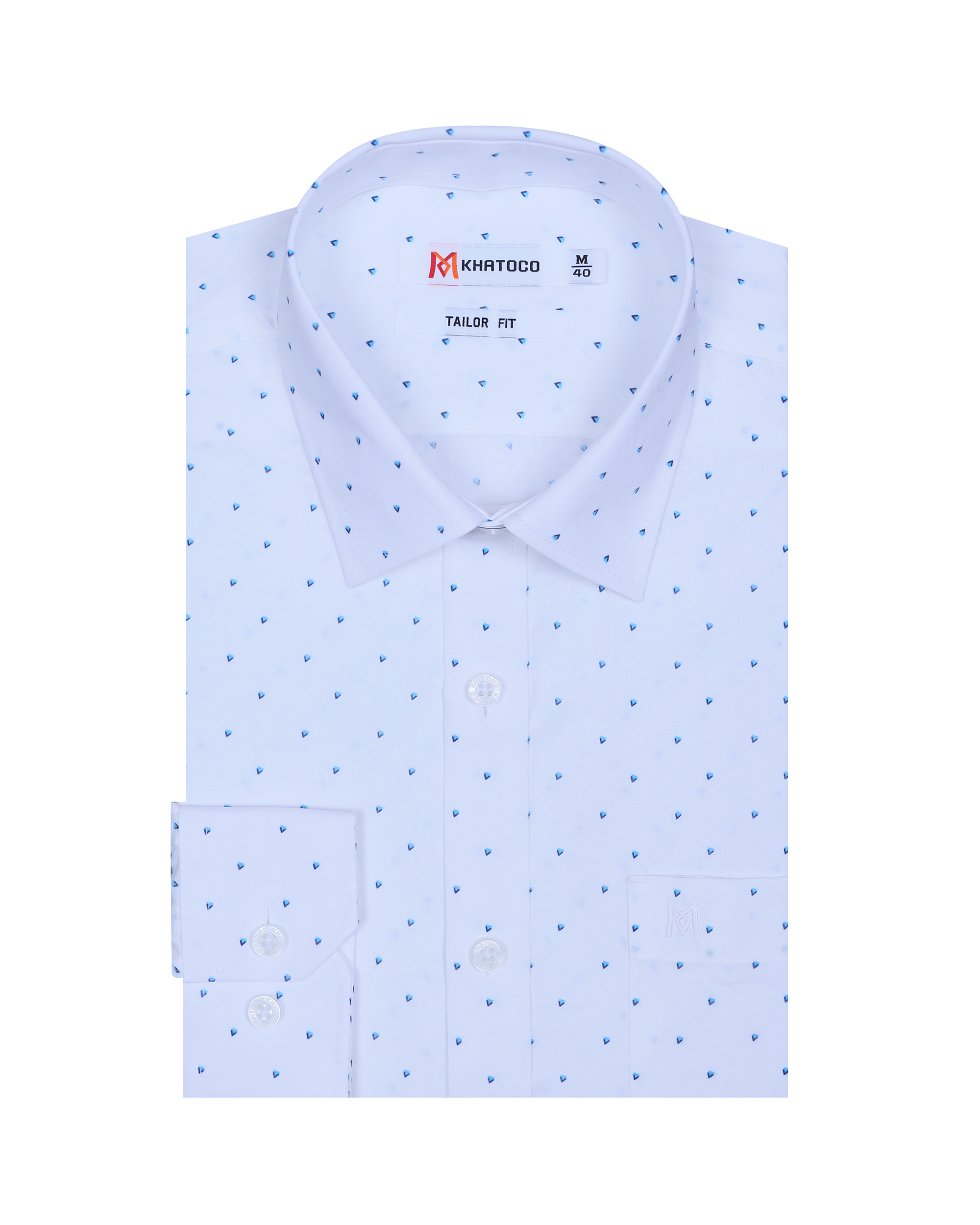 Áo sơ mi nam Khatoco tay dài  Áo Sơ Mi Nam Công Sở Trung Niên Thương Hiệu Anton Dài Tay Trắng Vải Cotton Họa Tiết Chấm Bi Nhỏ - Y302