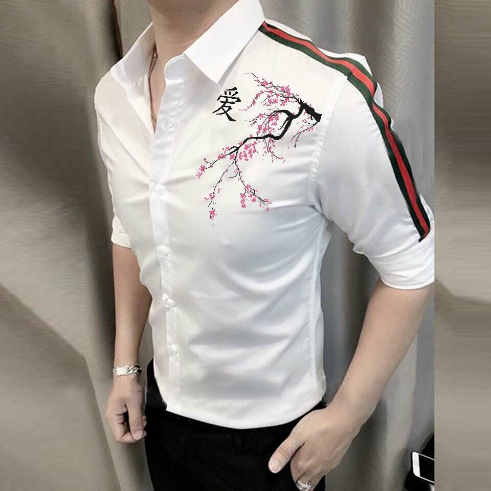 Thiết kế Áo sơ mi nam tay dài viền vai họa tiết cây hoa anh đào cao cấp phong cách đường may tỉ mỉ.