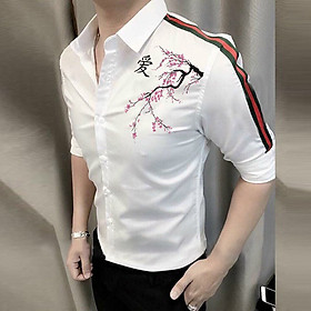 Thiết kế Áo sơ mi nam tay dài viền vai họa tiết cây hoa anh đào cao cấp phong cách đường may tỉ mỉ. Áo thiết kế form vừa vặn giúp tôn được đường nét