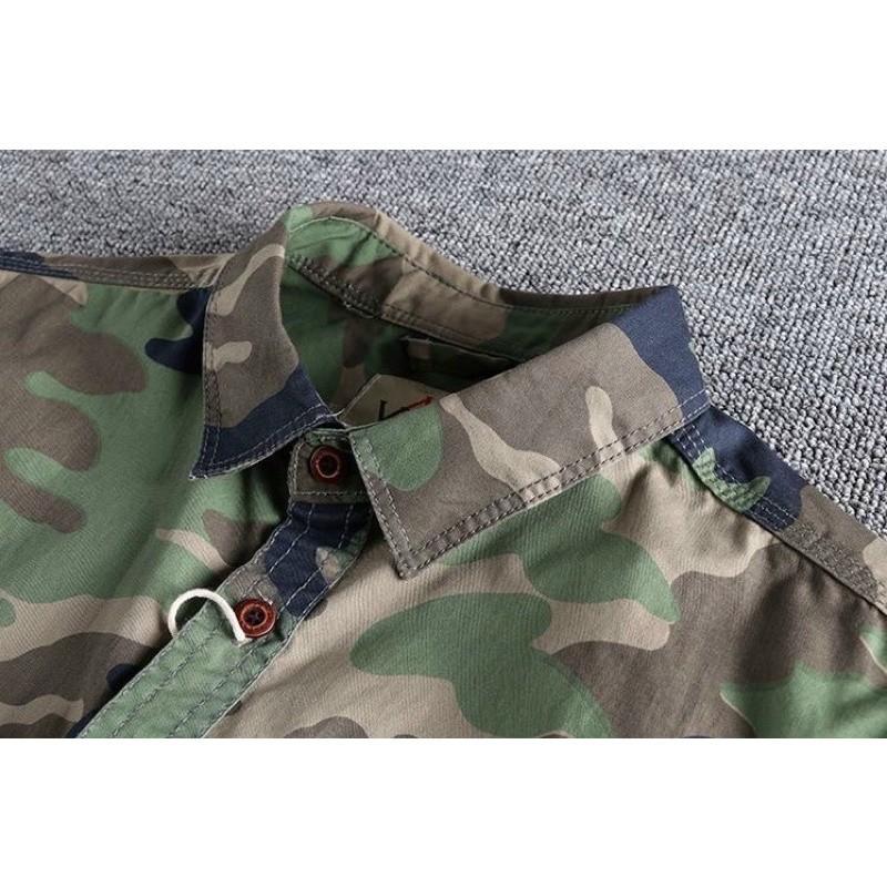 Áo sơ mi Retro túi hộp ngắn tay lính_dã ngoại Áo sơ mi quân đội Wild Casual Chất kaki được wash acid cực bụi , phom chuẩn mặc rất đẹp ạ Model thế hệ mới