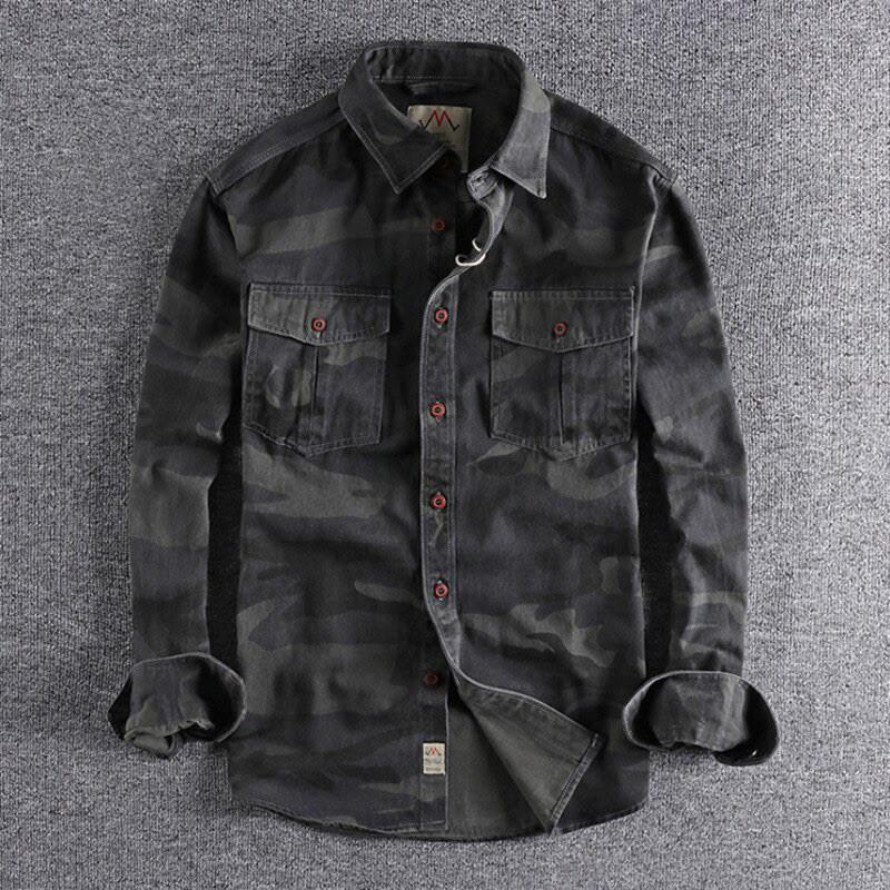 Áo sơ mi túi hộp phong cách Retro lính_dã ngoại Áo sơ mi Wild Casual Màu đang hot lắm ạ Chất kaki được wash acid cực bụi , phom chuẩn mặc rất đẹp ạ Size: