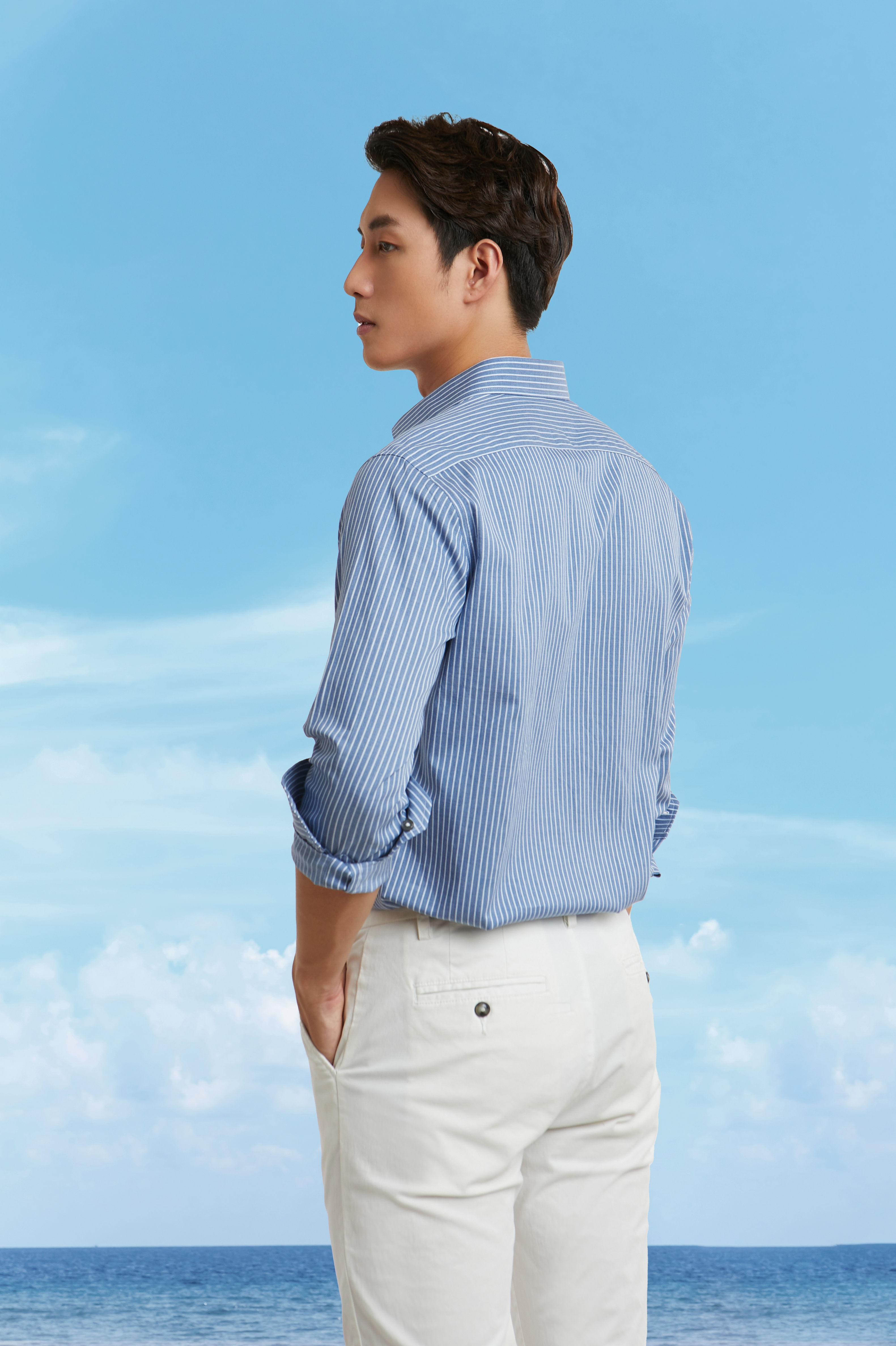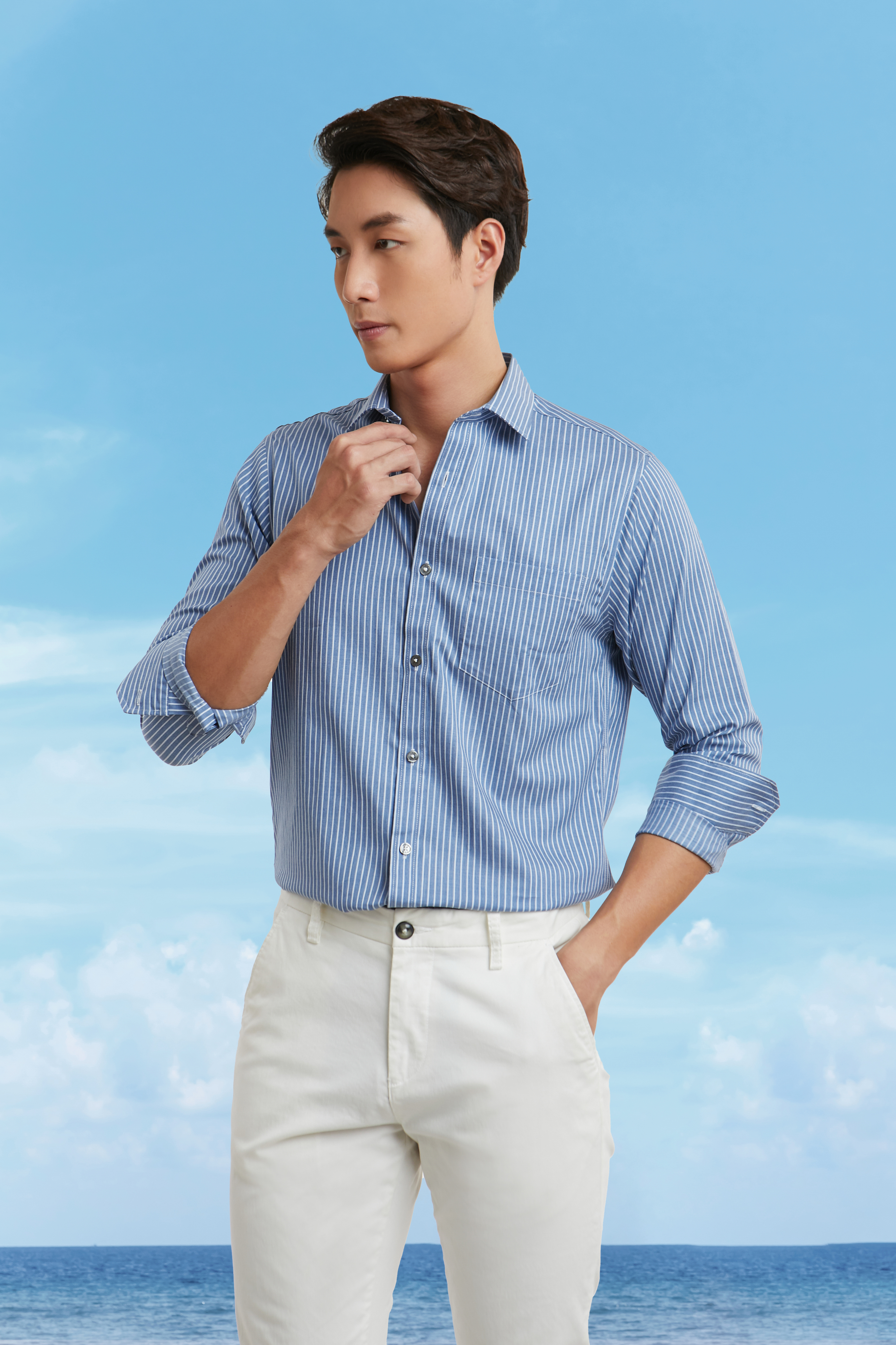 Form Taylor, tay dài  Form áo tiêu chuẩn với form áo rộng vừa phải, không ôm sát cơ thể, bó nhẹ ở vùng eo và tay áo. Độ rộng vùng ngực và nách cũng sẽ fit hơn với cơ thể. Không quá rộng như form áo cổ điển.  Màu vải nhã nhặn và trung tính dễ dàng phối trang phục tạo sự lịch lãm, nam tính  Nút ton-sur-ton khắc logo đẹp mắt phối trọn vẹn màu áo.  Logo thêu sắc nét trên túi áo. Chất liệu: 49% bamboo- 49% Microfiber-2% Spandex Mềm mịn |Thấm hút |Kháng khuẩn |Chống tia UV |Độ bền cao |Co giãn |Chống nhăn Màu sắc: trắng sọc