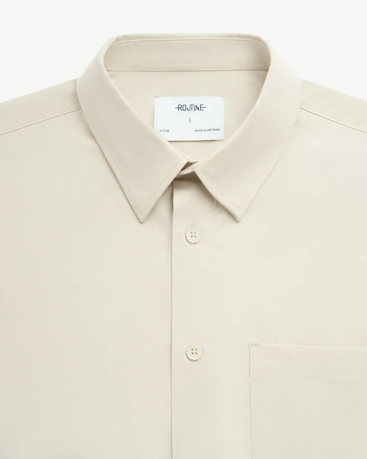 Áo sơ mi tay ngắn nam vải dù nhãn trang trí. Loose - RT 10F24SHS010 | ROUTINE CÀ MAU Đặc điểm nổi bật Form : Loose Fabric : Nylon Gender: Nam Kiểu tay: Tay ngắn