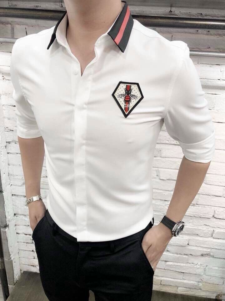 - Kiểu dáng : Dáng áo sơ mi ôm sát cơ thể, đặc biệt là cổ áo và dáng lưng áo ôm nhẹ giúp tôn dáng người mặc trông trẻ trung nam tính hơn. Cổ tay áo là ống côn bo gọn và được máy chắc giúp người mặc thoải mái vận động di chuyển mà không lo bị vướng.