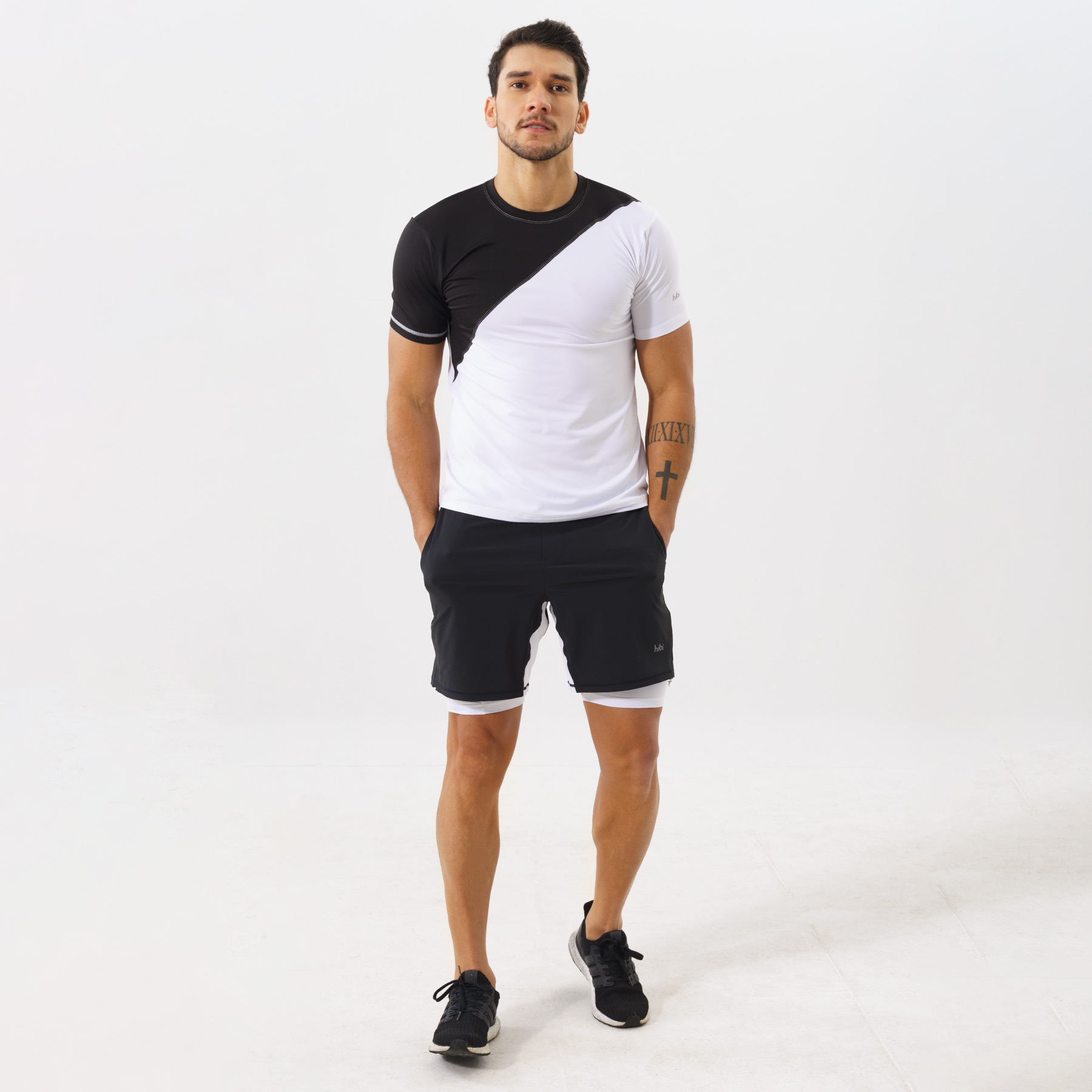 ✨Áo tập gym nam Hibi Sports T102 - Phối màu chéo, form ôm vừa, kiểu ngắn tay
