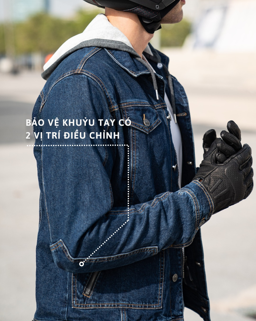– Giáp cùi chỏ có 2 vị trí tùy chỉnh phù hợp với người mặc và tấm chắn gió ở cổ áo có thể tháo rời