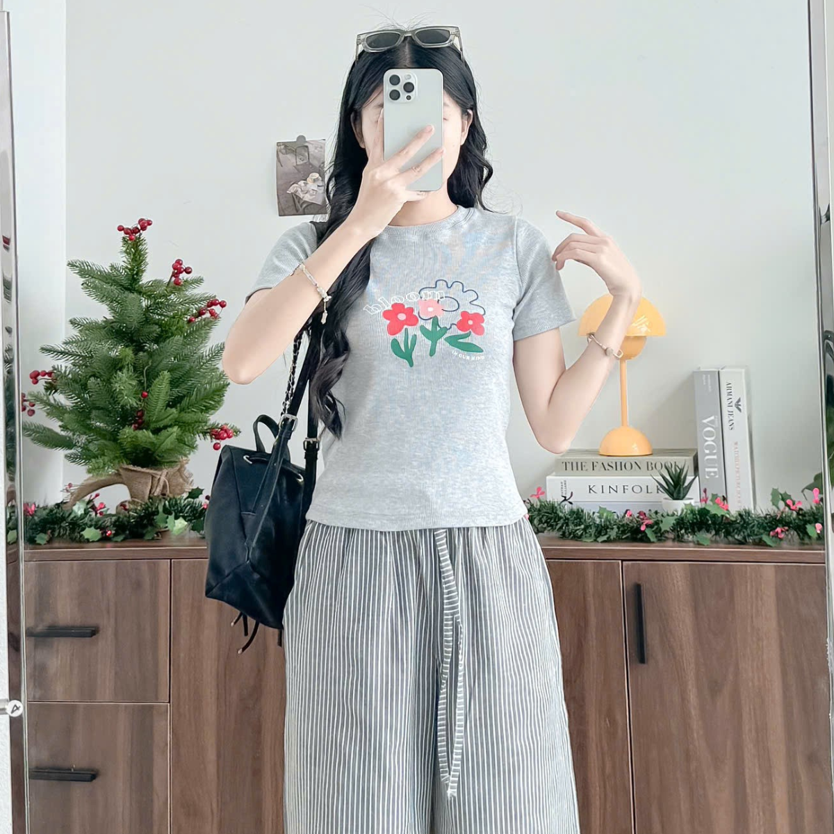 - Sản phẩm : Áo thun form ôm chất liệu co giãn in hình hoa Bloom In Our Mind Miều Est.2013