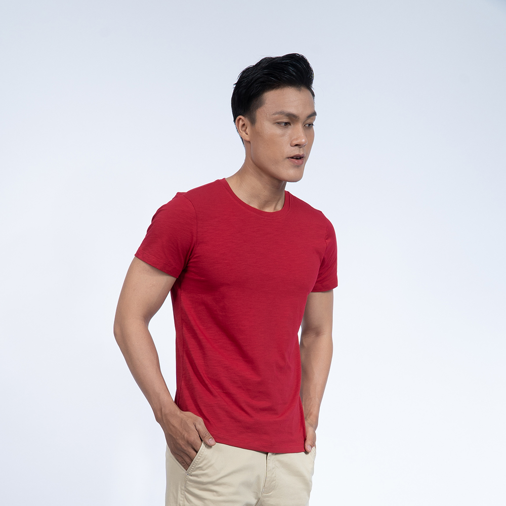 Áo thun nam cổ tròn màu đỏ đô Novelty 190153N Màu sắc: Đỏ đô Thành phần vải: 100% Cotton Form dáng: Regular Fit Thiết kế thể thao, trẻ trung Chất thun co dãn 4 chiều Vải nhanh thấm hút mồ hôi, nhanh khô Mềm mượt, mát lạnh, thích hợp cho mùa hè nóng bức HDSD: