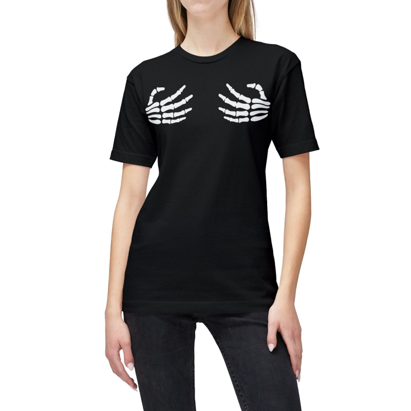 - Thiết kế form basic kinh điển với tay ngắn tạo nên sự thanh lịch, dễ mặc và phù hợp với mọi dáng người. Điểm nhấn đặc biệt của áo là họa tiết in hình bàn tay được thể hiện một cách tinh tế và đầy tính nghệ thuật, mang đến vẻ ngoài cá tính và khác biệt mà không quá phô trương.