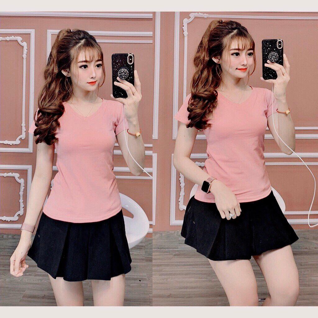 ✨Áo thun nữ MXM trơn cổ tim tay ngắn thun 4 chiều form ôm body từ 40-52kg ( ANU007 )