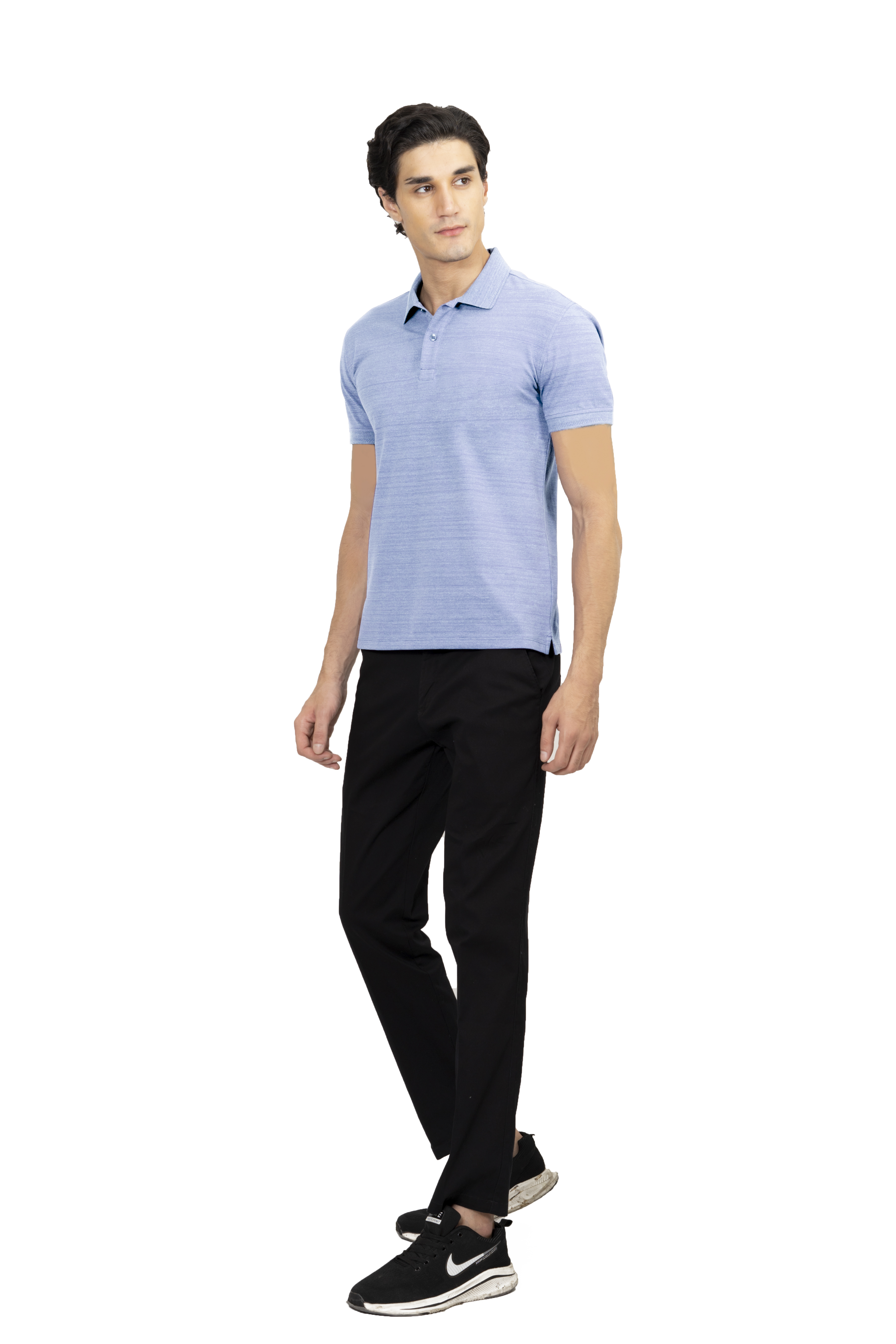 Thành phần 95%CVC 5%Spandex Form Regular fit Mô tả Áo thun Polo melange dệt chìm xương cá không túi đen bích NATMMNMCSR210114N Mã sản phẩm NATMMNMCSR210114N