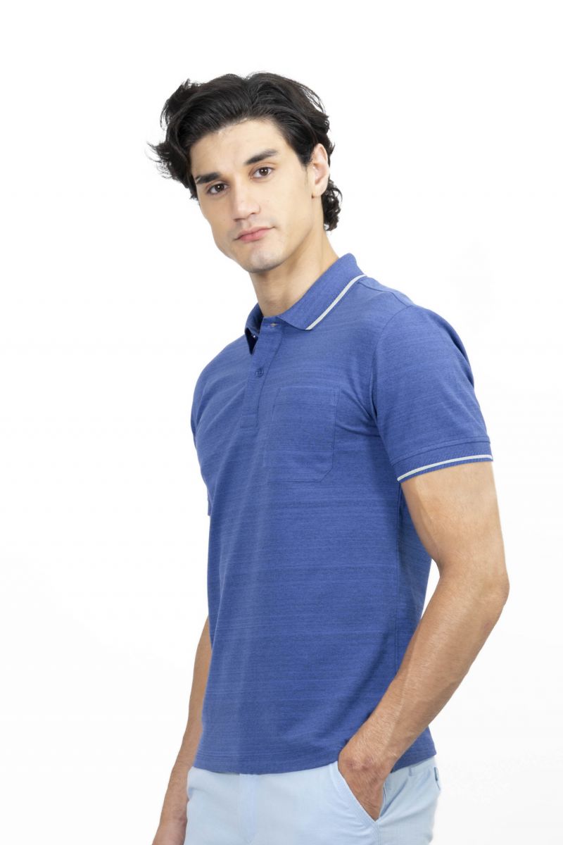 ✨Áo thun Polo melange dệt viền có túi xanh coban NATMMTMCSR210115N