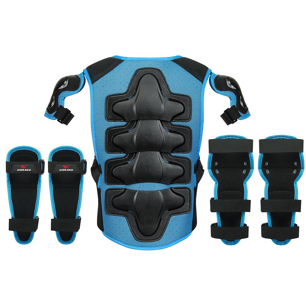 The protective gear set includes an armor vest, a pair of elbow pads and knee pads, providing full protection for your kids when riding, skiing, skating, and skateboarding.
