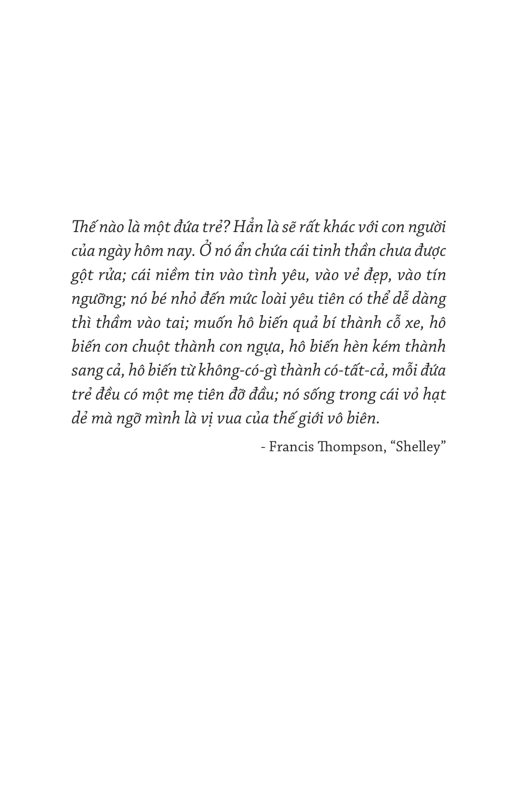 Thế giới tuổi thơ luôn là thế giới thần tiên, vì trẻ con có trí tưởng tượng mà người lớn hiếm khi nào có được. Với bọn trẻ, một khe nước chảy qua nhà có