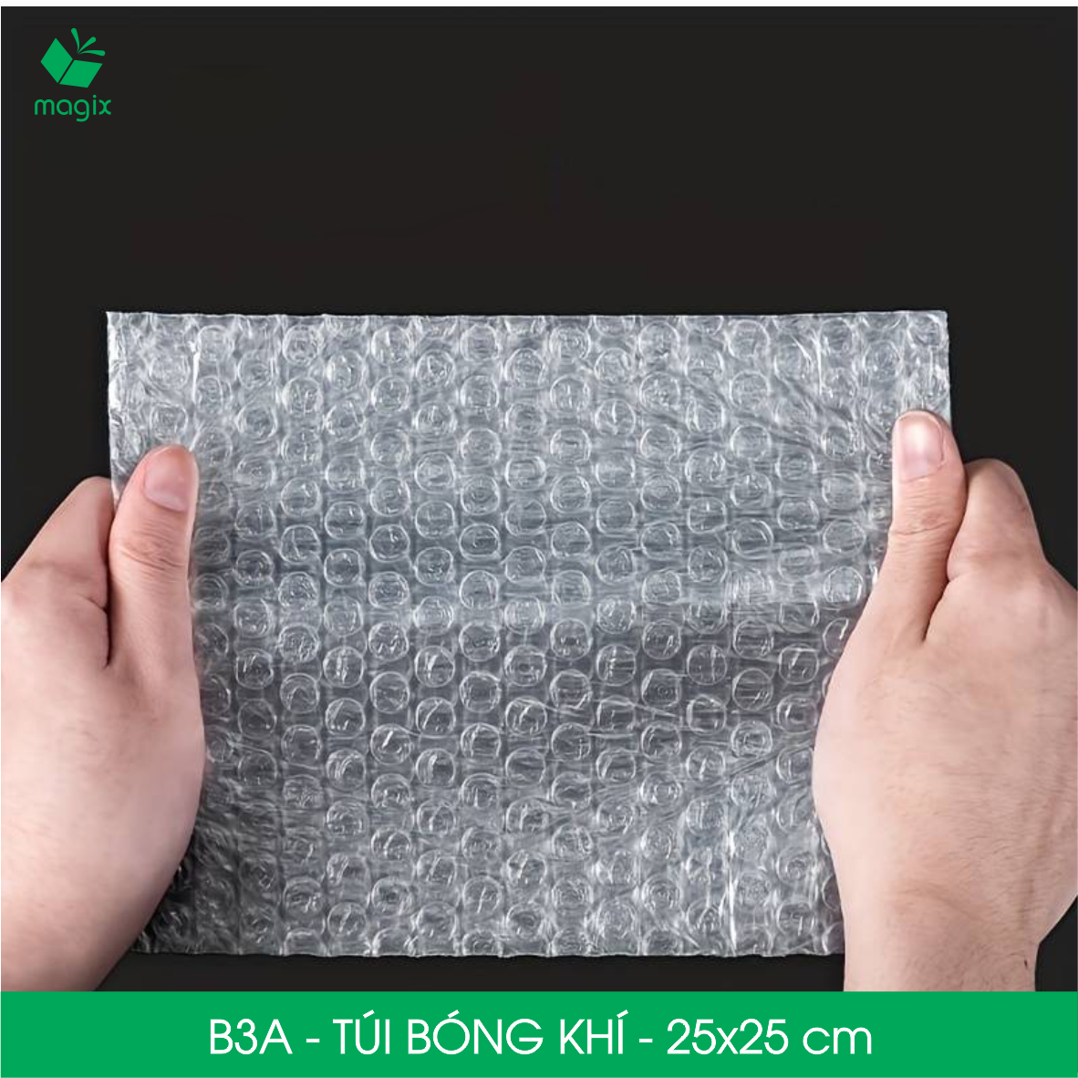 ĐẶC ĐIỂM SẢN PHẨM Túi khí đóng gói là mặt hàng đóng gói nhẹ, chắc chắn - mang lại sự đảm bảo về lớp đệm đáng tin cậy và giảm chi phí vận chuyển Cố định và bảo vệ đồ dễ vỡ khỏi bị sốc, rung và KHÔNG TRUYỀN LỰC trong túi bong bóng Tiện lợi, sử dụng đơn giản - dạng túi hơi, tiện dụng, chỉ cần bỏ sản phẩm vào túi và quấn lại mà không cần phải cắt giúp tiết kiệm thời gian Bền dẻo, chống thấm nước - cuộn bóng khí được làm bằng nhựa nguyên sinh với độ dẻo tuyệt vời, không dễ bị rách, thủng và bảo vệ vật khô ráo từ môi trường ướt bên ngoài Đa dạng kích thước, phù hợp nhu cầu đóng gói cụ thể ️ Lưu ý: Sản phẩm dễ cháy, tránh lửa CÔNG DỤNG Bảo vệ các vật dụng, đồ vật đựng chất lỏng dễ vỡ: • Bát đĩa, đồ sưu tầm, thủy tinh • Mỹ phẩm, nước hoa, son • Thiết bị điện tử và các thiết bị nhỏ QUY CÁCH KỸ THUẬT Chất liệu: Nhựa nguyên sinh Màu sắc: Trong suốt Hình dáng thiết kế: Túi 1 đầu hở Mã sản phẩm - Kích thước (phủ bì): • B1 - 15x10 cm • B2 - 20x15 cm • B3 - 30x20 cm • B3A - 25x25 cm • B3B - 40x30 cm