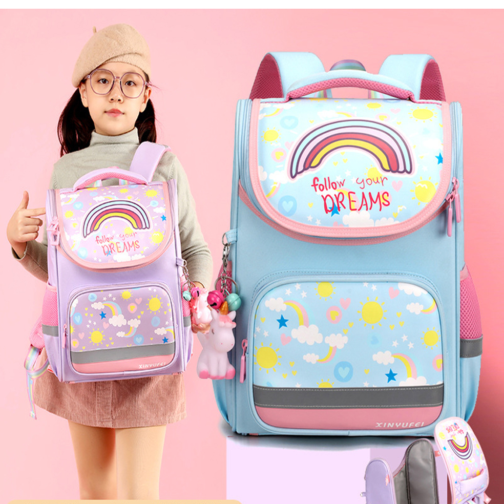 BALO học sinh cấp 1-2 giá sale sập sàn 100k, ba lô cặp sách cho bé gái chống gù màu loang cầu vồng