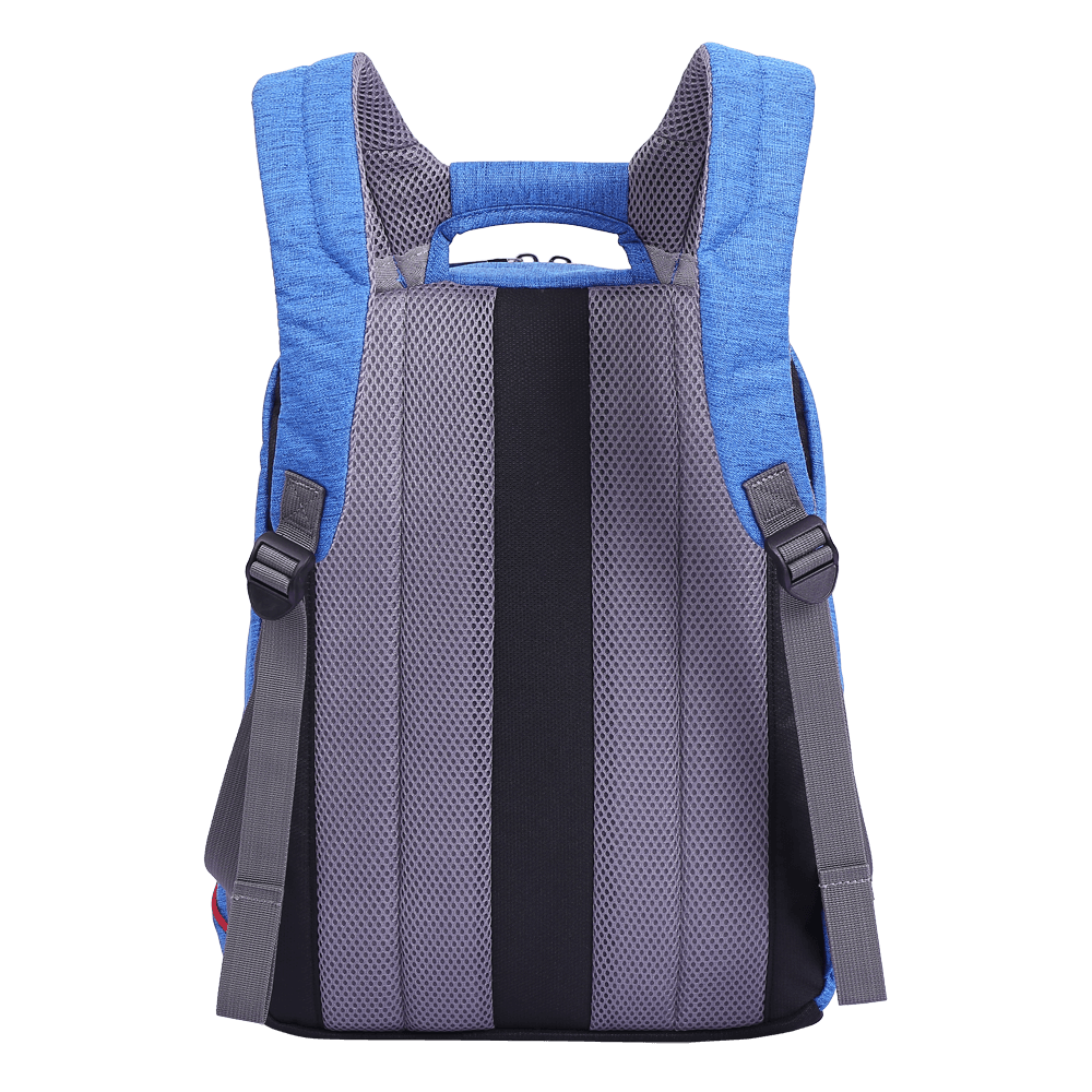 - Mặt lưng balo trang bị đệm lưới với hàng ngàn lỗ thoát khí li ti chống đổ mồ hôi lưng, bảo vệ cột sống.