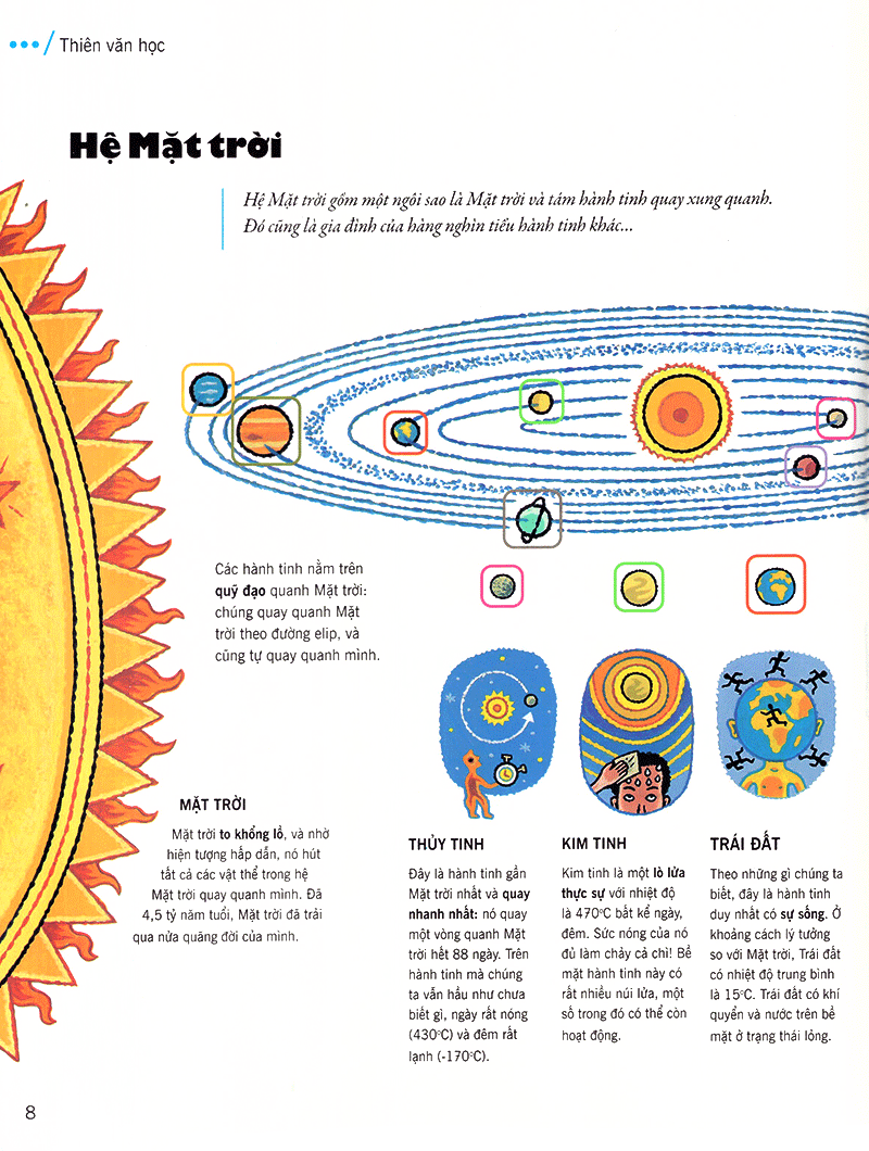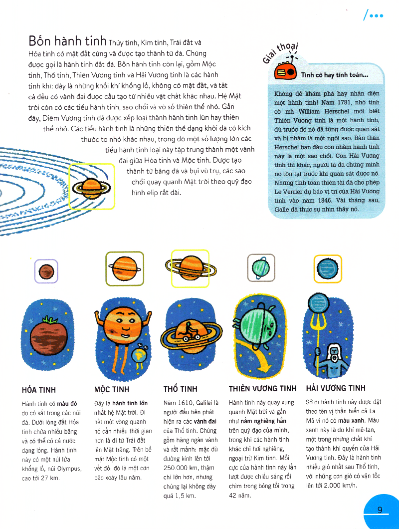500 Fantastic Facts About Space - Cùng Bé Khám Phá 500 Điều Thú Vị Về Vũ Trụ Cuốn sách đầy ắp những kiến thức xịn sò đáng kinh ngạc : - Những hành tinh nào