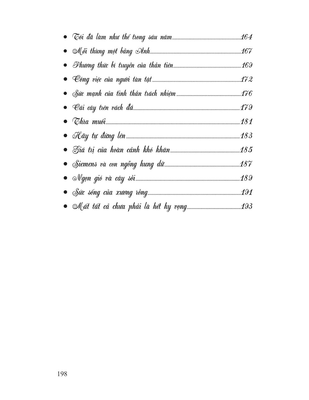 Tập hợp những câu chuyện ý nghĩa về tinh thần vượt lên hoàn cảnh. Mỗi câu chuyện là một số phận, một hoàn cảnh, một trải nghiệm cuộc sống, ngắn gọn nhưng vô cùng xúc tích và giàu ý nghĩa. “Hoàn cảnh hay môi trường sống của bạn là do bạn chọn lựa. Hãy thay đổi cuộc sống của bạn bằng chính bàn tay của mình. Bạn luôn có thể trở thành người thành công trong bất kỳ hoàn cảnh nào.”