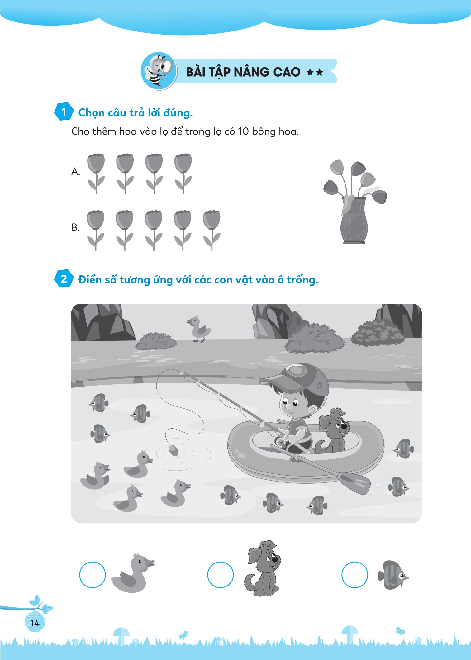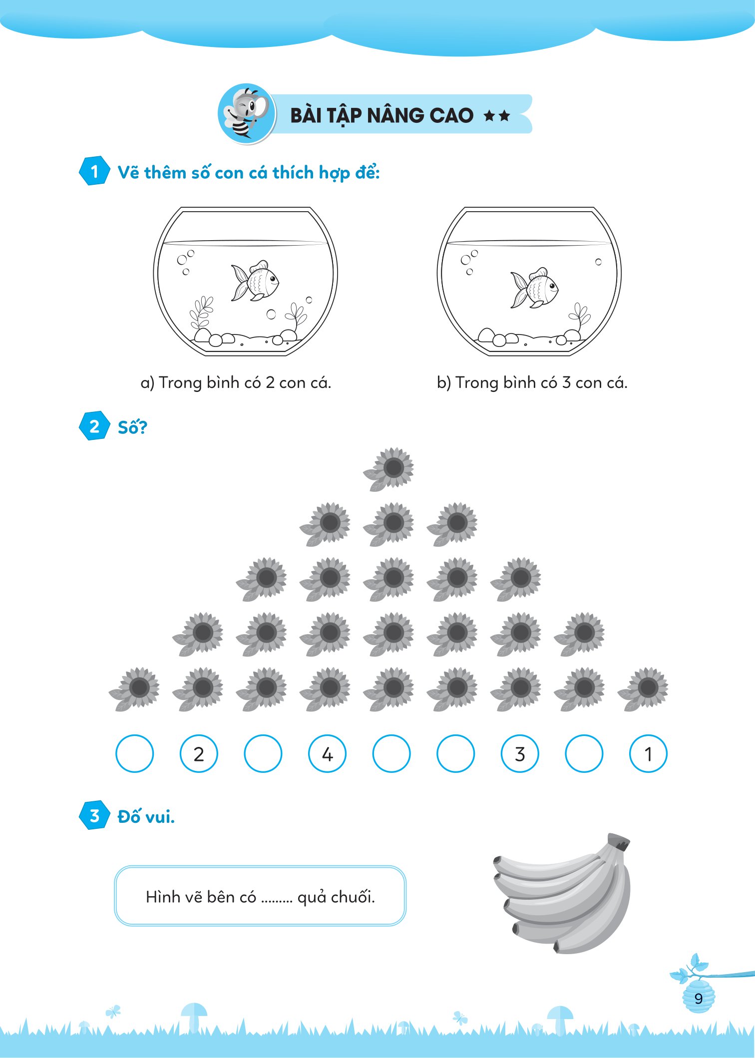 Các bài tập trong phần này được thiết kế sinh động, đầy cảm hứng với rất nhiều các hoạt động nối, tô màu, điền số,... giúp khơi gợi hứng thú học và làm bài tập của các em, đồng thời giúp các em củng cố và nắm chắc các kiến thức đã học.