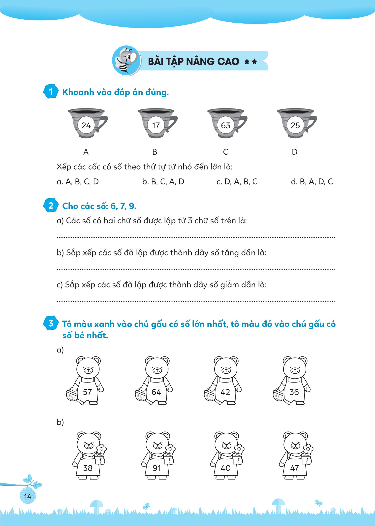 Các bài tập trong phần này được thiết kế sinh động, đầy cảm hứng với rất nhiều các hoạt động nối, tô màu, điền số,... giúp khơi gợi hứng thú học và làm bài tập của các em, đồng thời giúp các em củng cố và nắm chắc các kiến thức đã học.