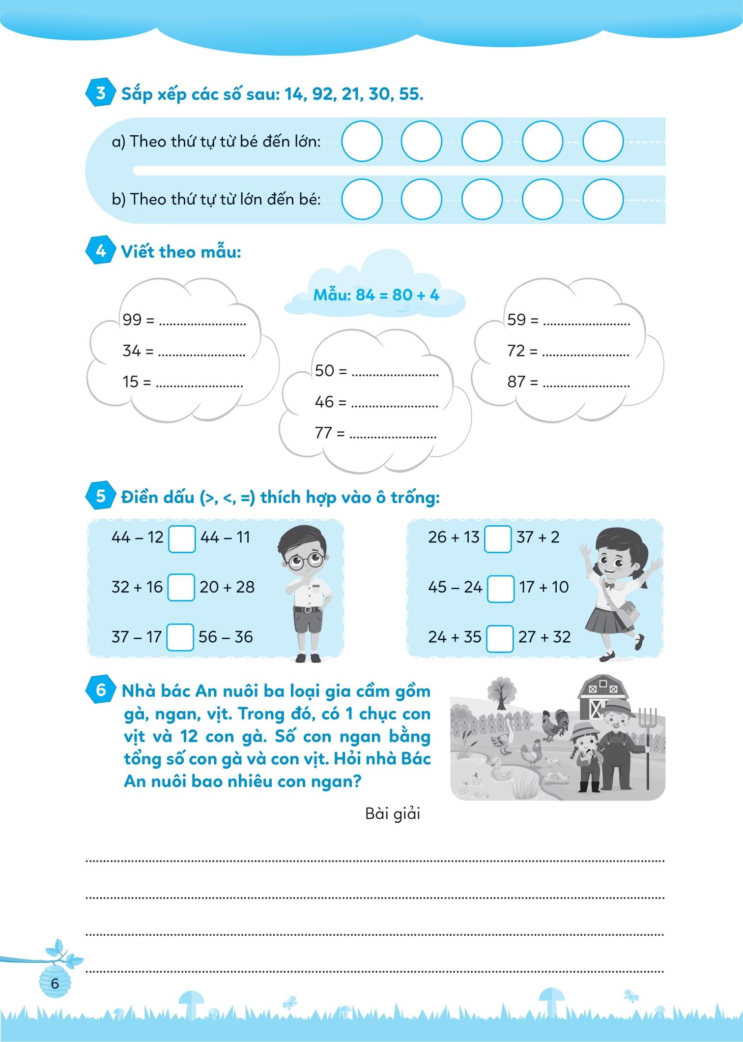 - Bài tập cơ bản Các bài tập trong phần này được thiết kế sinh động, đầy cảm hứng với rất nhiều các hoạt động nối, tô màu, điền số, giúp khơi gợi hứng thú học và làm bài tập của các em, đồng thời giúp các em củng cố và nắm chắc các kiến thức đã học.