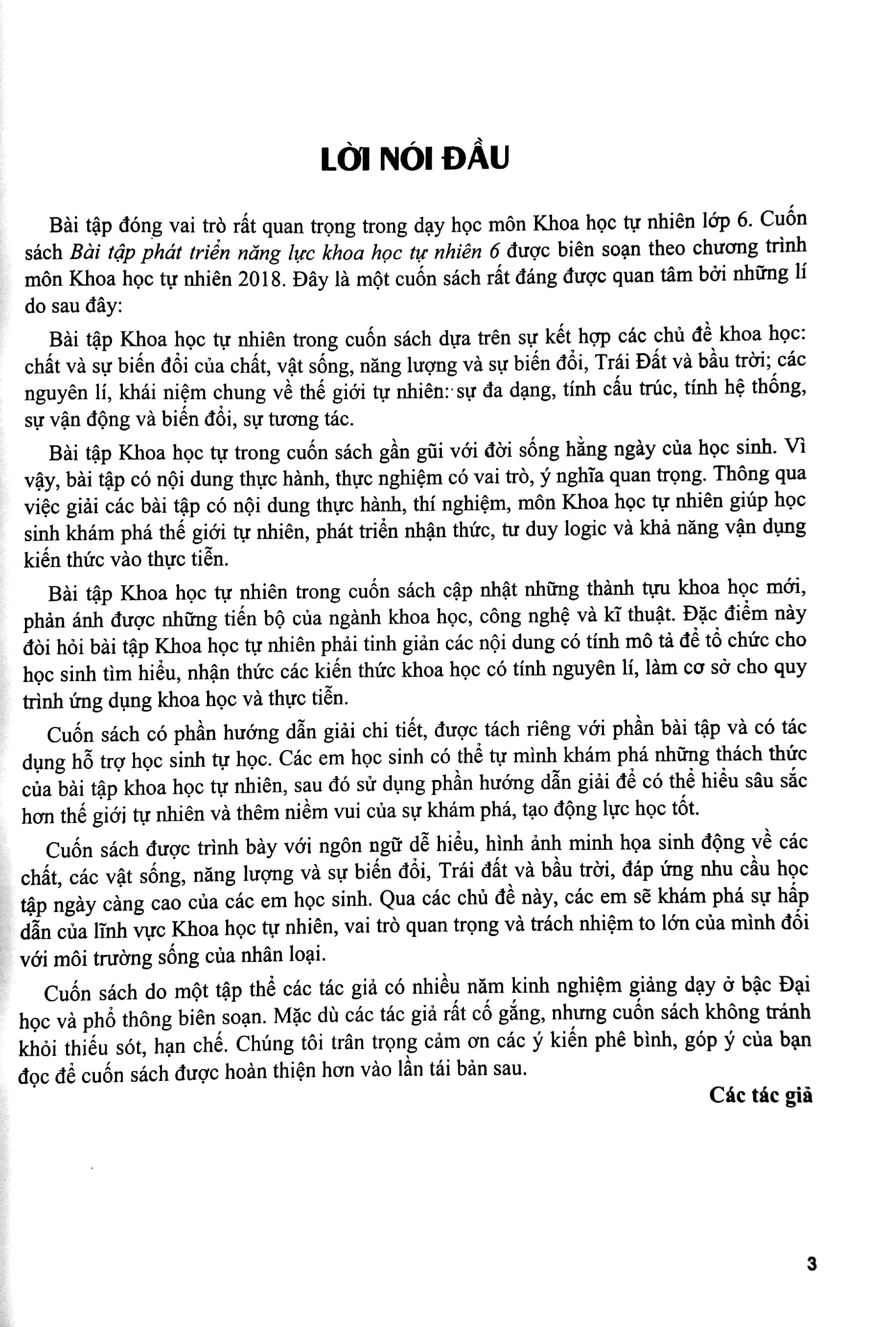 Bài Tập Phát Triển Năng Lực Môn Khoa Học Tự Nhiên 6 Cuốn sách dựa trên sự kết hợp các chủ đề khoa học : chất và sự biến đổi của chất, vật sống, năng lượng và sự biến đổi, Trái Đất và bầu trời, các nguyên lý, khái niệm chung về thế giới tự nhiên; sự đa dạng, tính cấu trúc, tính hệ thống, sự vận động và biến đổi, sự tương tác