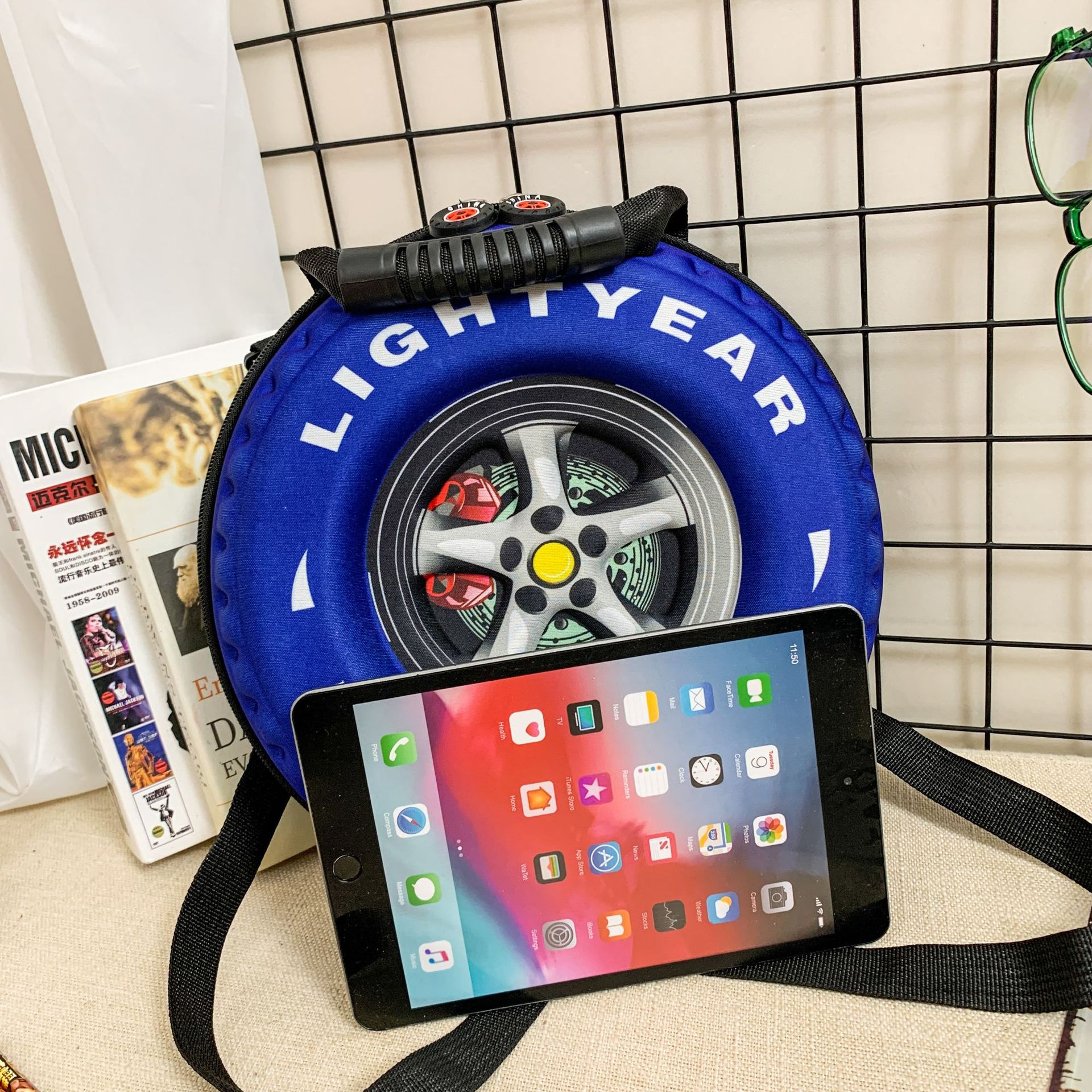Thiết kế 3D đẹp mắt, dáng balo 3D hộp hình lốp ô tô mới lạ cùng với họa tiết dễ thương tạo sự thích thú cho các bé - Dây đeo tùy chỉnh: ba mẹ