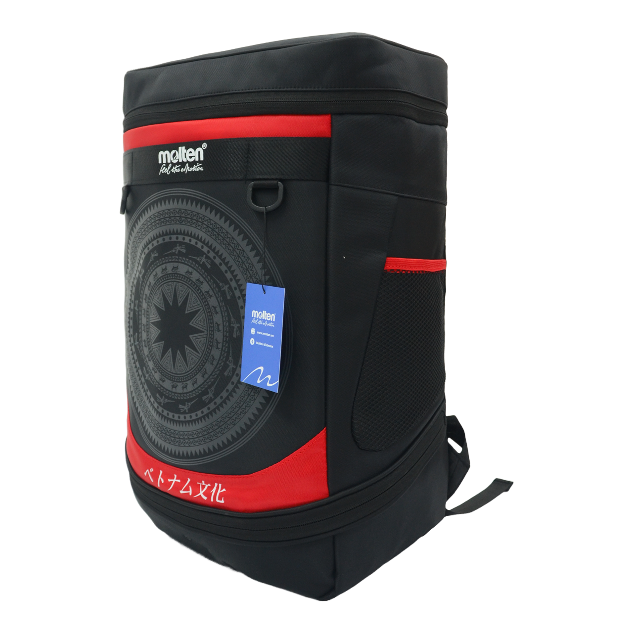 Balo Thể thao 35L Molten Đỏ Chất liệu: 100% Polyester tráng chống nước 2 mặt Dung tích: 35l Kích thước: 32 x 19 x 50cm (rộng x dài x cao) Dây đeo vai điều chỉnh độ dài Phiên bản Văn hoá Việt Nam Cấu tạo: 6 ngăn