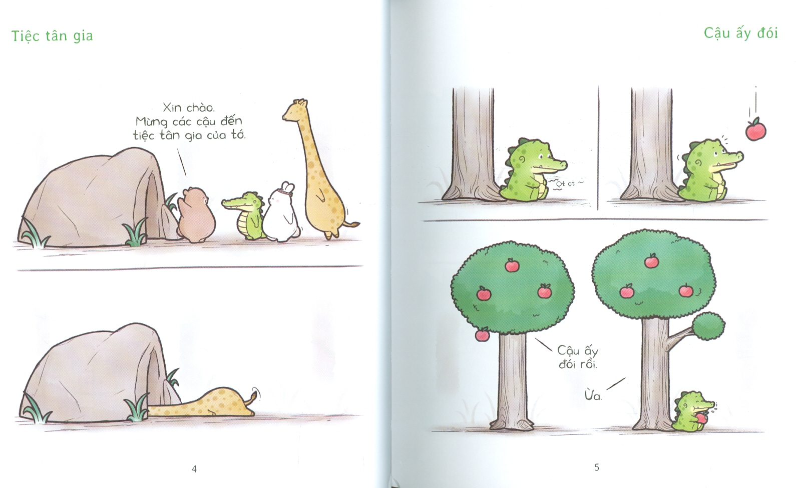 Những mẩu truyện tranh ngắn duyên dáng và hóm hỉnh của Chow Hon Lam đã ghi lại những khoảnh khắc của lòng tốt, của tình bạn, tình yêu, của sự tôn trọng và chia sẻ. Bộ sách nhỏ về chàng cá sấu thân thiện sẽ đem đến cho người đọc những cảm xúc tích cực – món quà hoàn hảo cho cả trẻ em và người lớn.