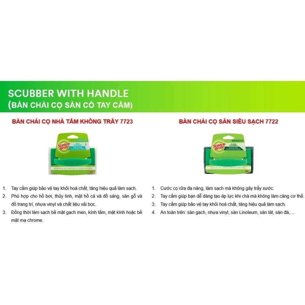 ✨Bàn chải chà sàn (phòng tắm, phòng vệ sinh, ...) 3M Scotch-Brite, siêu sạch, không trầy xước, 8x12x8cm, màu xanh