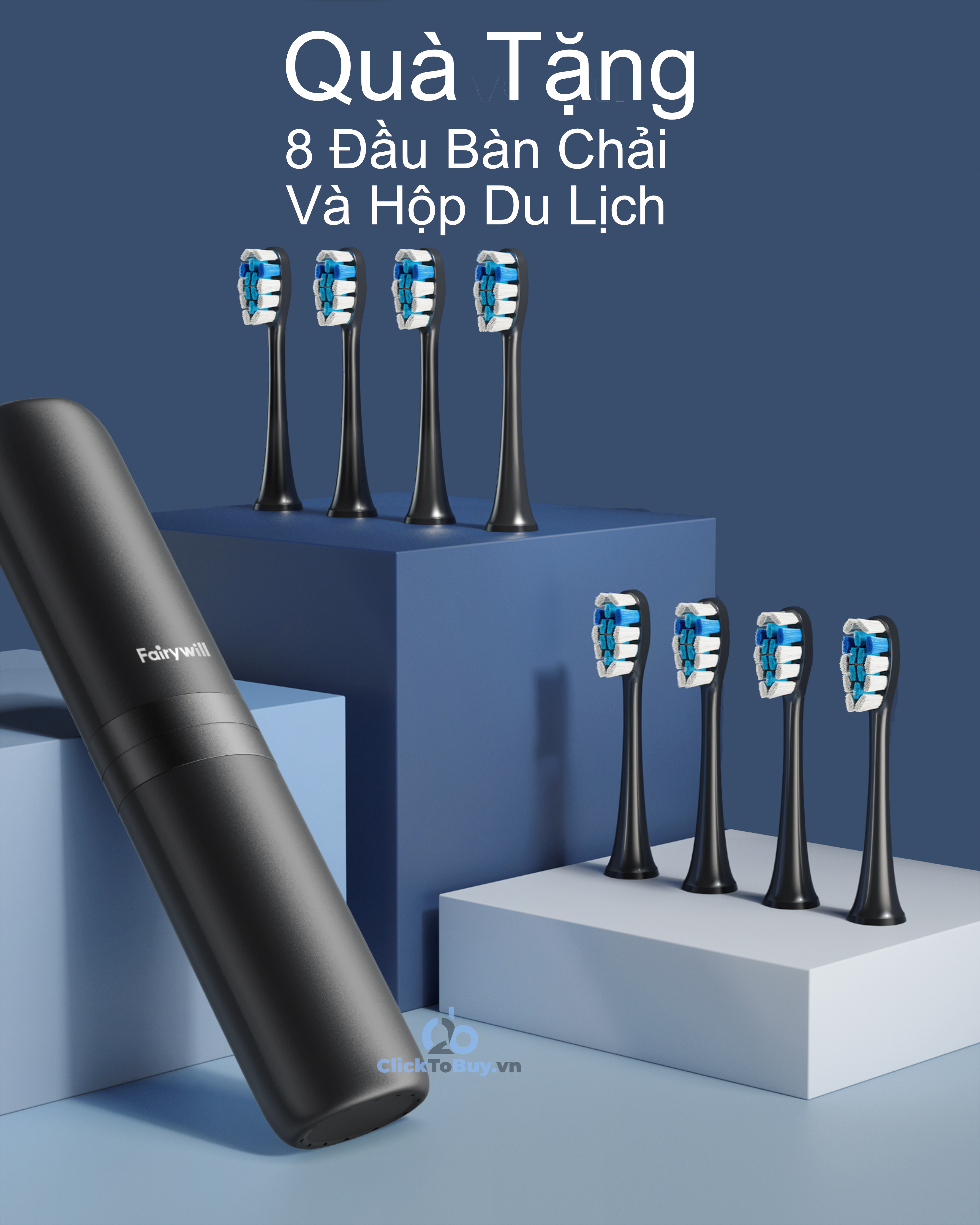 - Với 8 đầu bàn chải đi kèm, bộ kit Fairywill E11 đủ sử dụng tối thiểu 2 năm